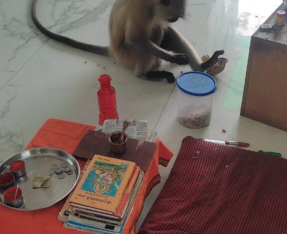 बात है चौहान टाउन ग्रीन वैली स्थित अवधेश्वर बाबा धाम मंदिर प्रांगण की जहां पर आज शनिवार के दिन साक्षात हनुमान जी के रूप में वानर वहां उपस्थित होकर बड़े चाव से प्रसाद ग्रहण कर रहे थे