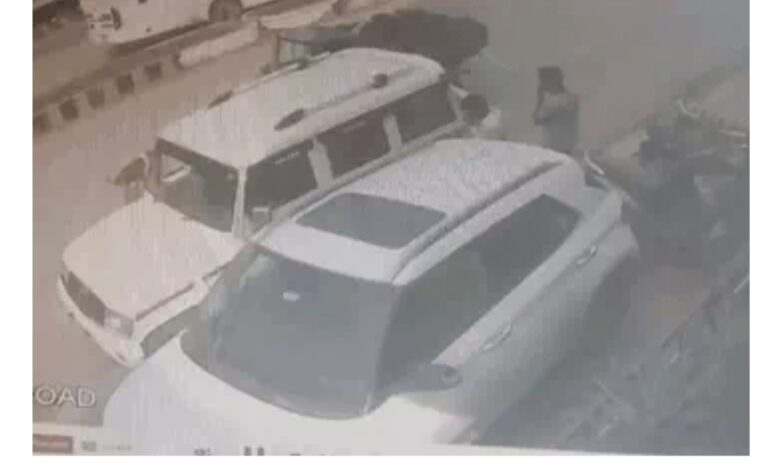 बैंक के बाहर खड़ी कार के पास मौजूद आरोपी सीसीटीवी कैमरे में कैद हुए हैं।लावारिस हालत में बरामद हुई बदमाशों की बाइक