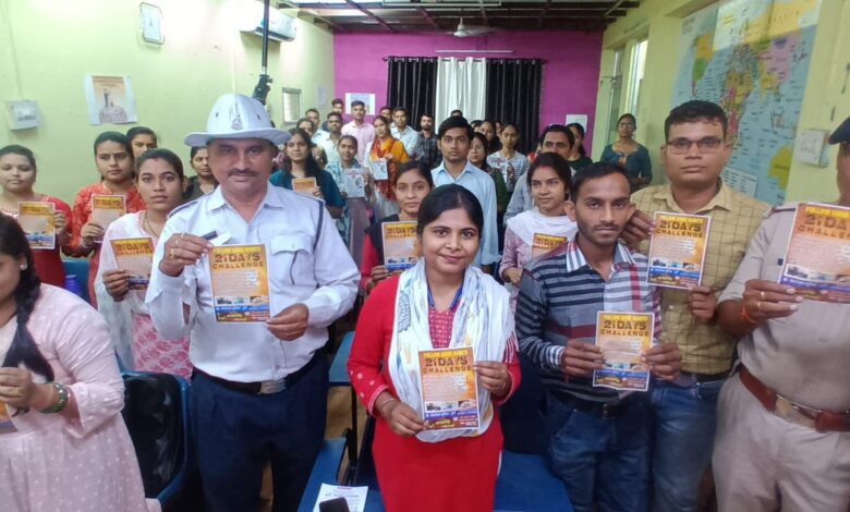 छात्र/छात्राओं को यातायात के अधिकारियों द्वारा 21 दिन हेलमेट एवं सीट बेल्ट लगाये और 22वे दिन होने वाले फायदे स्वयं महसूस करने बताया गया
