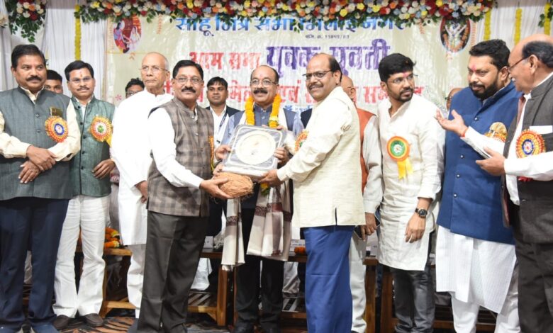 आराध्या टाइम्स डेस्क /साहू मित्र सभा भिलाई नगर के तत्वाधान में 1 दिसंबर को साहू सांस्कृतिक सदन जीई रोड सुपेला भिलाई नगर में साहू समाज के 21वें युवक-युवती परिचय सम्मेलन और सम्मान समारोह का आयोजन किया गया। समारोह में उपमुख्यमंत्री एवं नगरीय प्रशासन मंत्री श्री अरूण साव मुख्य अतिथि के रूप में सम्मिलित हुए। वैशालीनगर विधानसभा विधायक श्री रिकेश सेन ने कार्यक्रम की अध्यक्षता की। समारोह में उपमुख्यमंत्री श्री साव ने माता कर्मा की पूजा-अर्चना की और साहू समाज के उल्लेखनीय कार्यों की प्रशंसा की। उप मुख्यमंत्री श्री साव ने उपस्थित गणमान्य नागरिकों को सम्बोधित करते हुए कहा कि साहू समाज साहू मित्र सभा बेहतरीन कार्य कर रहा है। युवक युवती परिचय सम्मेलन पूरे प्रदेश में हो रहा है। परिवार की मदद करने के उद्देश्य से परिचय सम्मेलन कारगर सिद्ध हो रहा है। साहू समाज ईमानदारी और मेहनत से आगे बढ़ रहा है। प्रदेश में साहू समाज अपनी अलग पहचान बनाकर नाम रोशन कर रहा है। आज के समय की आवश्यकता के अनुसार ऐसे ही योजना के साथ साहू समाज को आगे बढ़ना है। हमें सभी समाज को साथ लेकर चलना है और समाज की गरिमा बनाकर रखना है