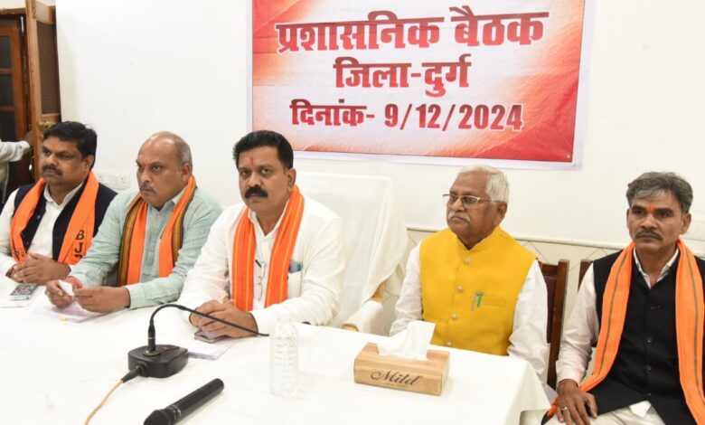 आराध्या टाइम्स डेस्क /प्रदेश के गृहमंत्री तथा दुर्ग जिले के प्रभारी मंत्री श्री विजय शर्मा ने आज सर्किट हाउस दुर्ग में जिले के प्रशासनिक अधिकारियों की बैठक लेकर विभागीय काम काज की अद्यतन स्थिति की समीक्षा की। उन्होंने विभागीय कार्यों में कसावट लाने की बातें कही। बैठक के दौरान जिले में निर्माण कार्यों, आवास प्लस अंतर्गत हितग्राहियों का आवास आबंटन, शहरी क्षेत्रों में आबादी पट्टा वितरण एवं सर्वे पर चर्चा हुई। इसी प्रकार रिसाली में कॉलेज भवन के लिए जमीन हेतु बीएसपी के साथ समन्वय कर उपलब्ध कराने, अपराध पर प्रभावी नियंत्रण हेतु कार्यवाही, जमीन त्रुटि सुधार कार्य प्राथमिकता के साथ कराने और राशन दुकान संचालकों के प्रकरणों पर कार्यवाही आदि पर भी चर्चाएं हुई