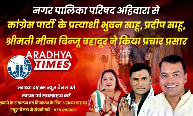 नगरीय निकाय चुनाव में महज कुछ दिन शेष रह गए हैं, ऐसे में भाजपा कांग्रेस सहित अन्य दलों ने अपनी कमर कस ली है, आज अहिवारा नगर पालिक से कांग्रेस पार्टी के प्रत्याशी भुवन साहू चुनाव प्रचार प्रसार के लिए अपने समर्थकों के साथ निकले और वार्ड भ्रमण करते हुए जनता से आशीर्वाद मांगा, क्षेत्र भ्रमण के दौरान उन्होंने बताया कि वार्ड की मूलभूत समस्याओं सड़क बिजली और पानी की समस्याओं सहित वार्ड की जनता को राशन कार्ड, महतारी वंदन सहित शासन की योजनाओं के लाभ से वंचित लोगों को लाभान्वित कराने के उद्देश्य से वार्डवासियों के आग्रह पर वे चुनावी रण में उतरे है, और उन्हें पूर्ण विश्वास है कि वे विजय प्राप्त करेंगे कांग्रेस से अध्यक्ष के प्रत्याशी भुवन साहू के साथ वार्ड नंबर 12 के प्रत्याशी प्रदीप साहू वार्ड नंबर 11 के प्रत्याशी यमुना साहू वार्ड नंबर 8 की प्रत्याशी मीना बहादुर ने भी लोगो के बीच पहुँच कर अपने लिए वोट की अपील की एवं भारी मतो से विजयी बनाने का आग्रह किया