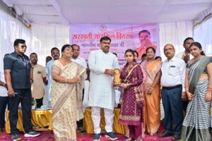 दुर्ग/आराध्या टाइम डेस्क स्कूल शिक्षा मंत्री श्री गजेंद्र यादव ने आज सरस्वती साइकिल योजना के तहत तिलक उच्चतर माध्यमिक कन्या शाला में 55 छात्राओं को साइकिल वितरण किया। उन्होंने कक्षा 10वीं एवं 12वीं में प्रथम, द्वितीय एवं तृतीय स्थान प्राप्त छात्राओं को सम्मानित किया